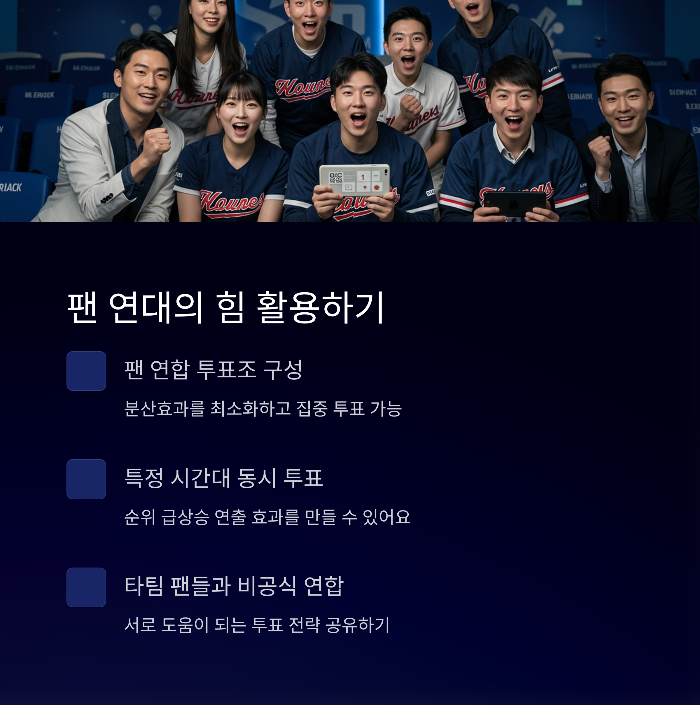 투표 시즌이 되면 각 팀 팬카페나 SNS, 커뮤니티에 투표 독려글이 올라옵니다. 이걸 잘 활용해야 전략이 돼요.